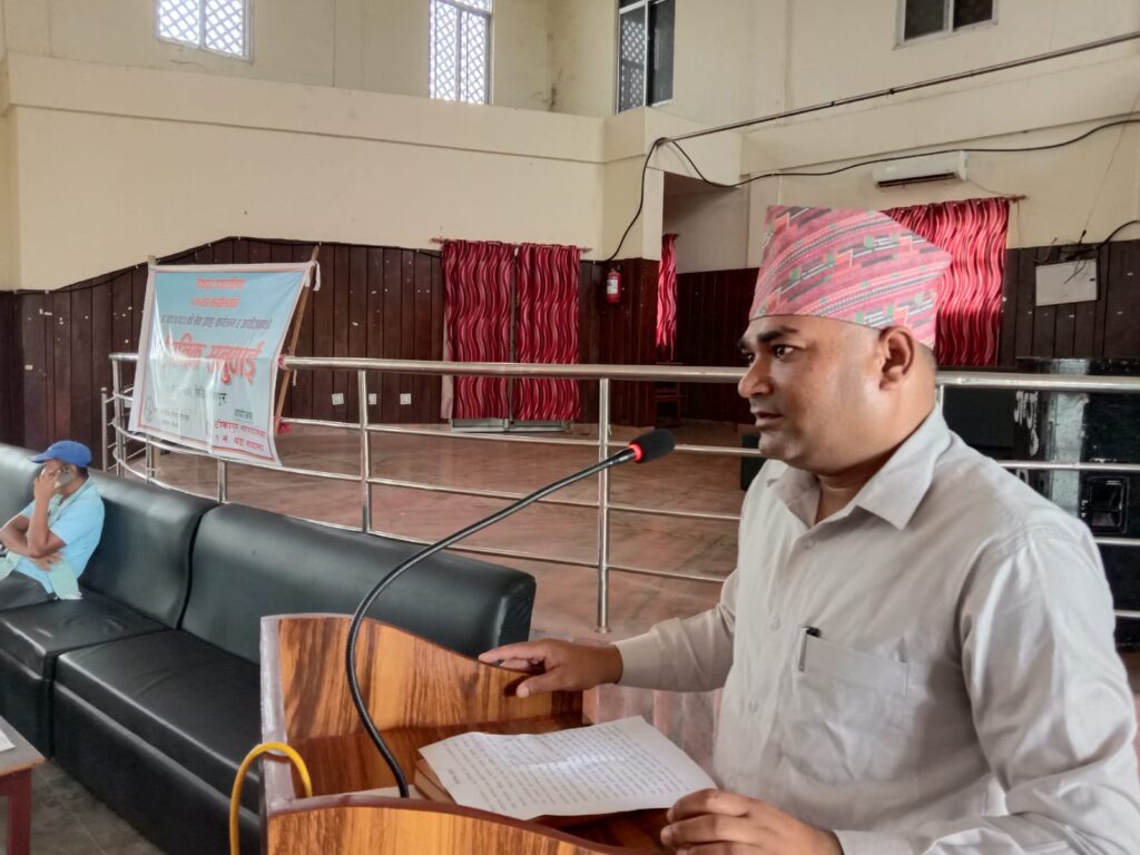 नागरिक उन्मुक्ती पार्टीका गोपाल थापाले सडक पिच, ग्रावेल र माटो पटानी गर्नु भन्दा पहिले ढल निकासको कार्यलाई जोड दिन आग्रह गर्नुभएको उहांले सडक किनारामा बस्तु भाउ बाध्नेलाई कडा कारवाहि गर्नुपर्ने र विककास निर्माणका योजनाहरु जेठ महिना भित्रै सम्पन्न गर्नुपर्ने निति बनाउन सुुझाव दिनुभएको छ ।