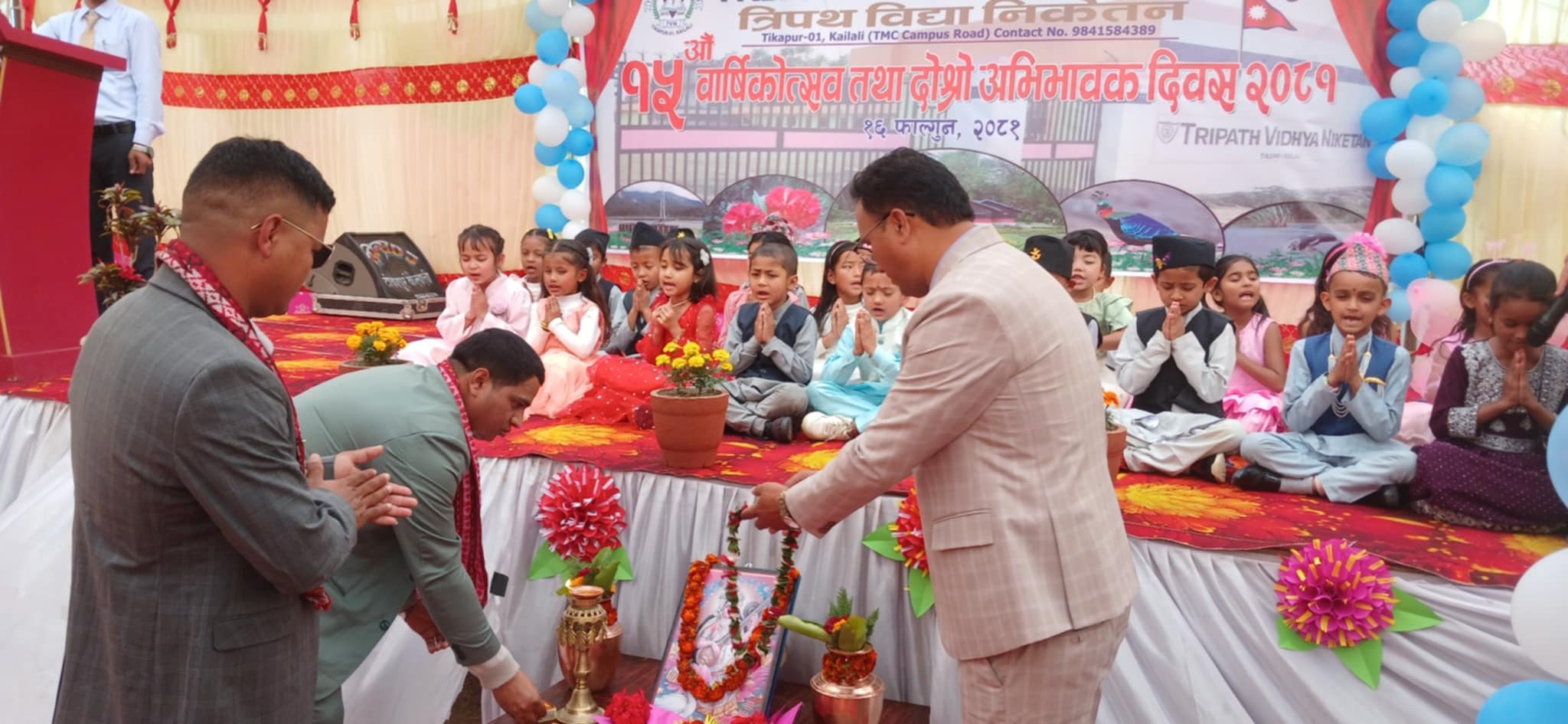 टीकापुर, १७ फागुन/टीकापुर स्थित त्रिपथ बिद्या निकेतन को १५ औं बार्षिकोत्सव तथा अभिभावक दिवस शुक्रवार भएको छ । बिद्यालयका अध्यक्ष हिक्मत बहादुर बिष्टको सभापतित्वमा भएको उक्त कार्यक्रममा टीकापुर नगरपालिकाका शिक्षा शाखा अधिकृत नरेश अवस्थी प्रमुख अतिथि रहनुभएको थियो ।