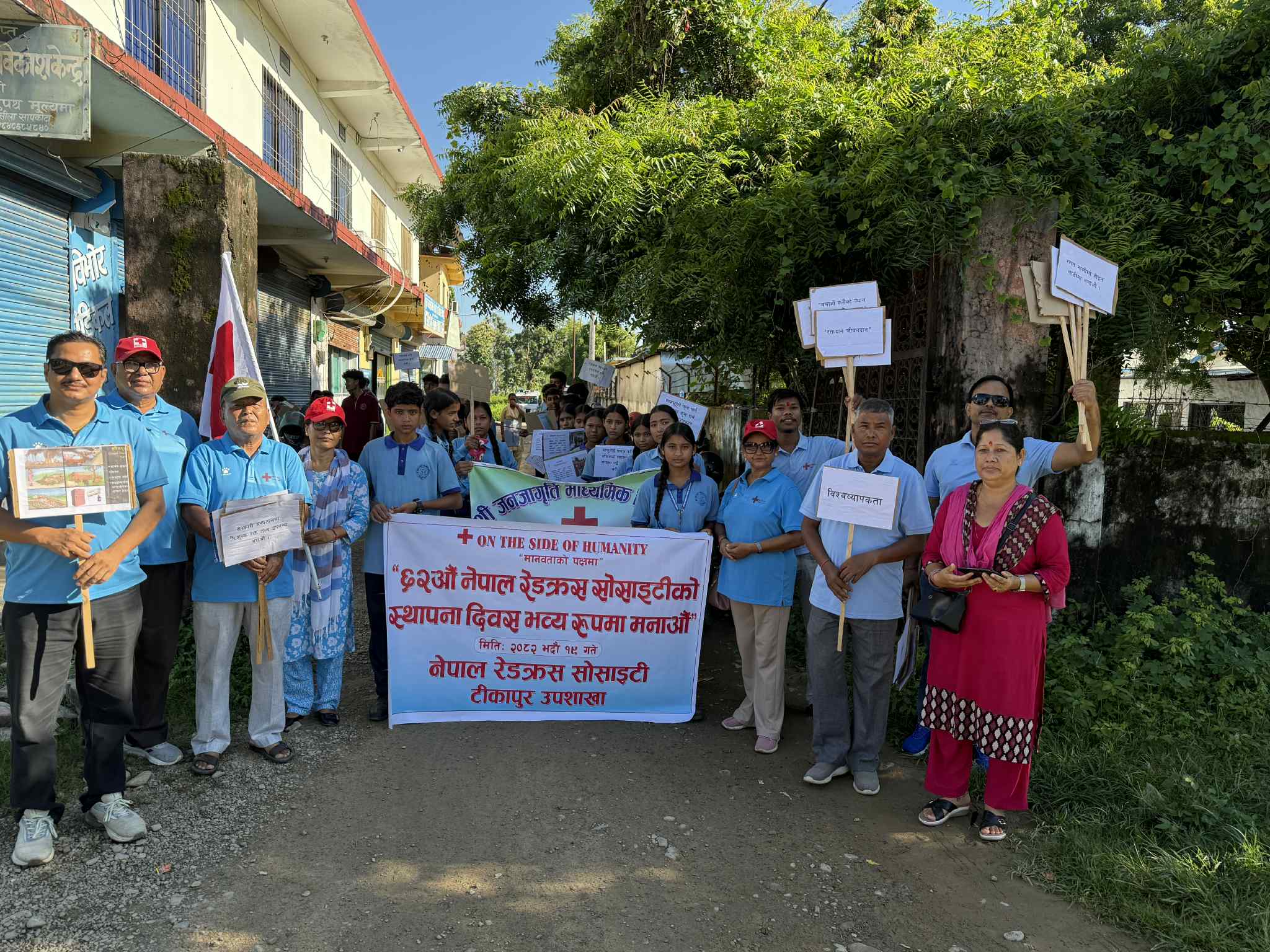 टीकापुर, २० भाद्र/नेपाल रेडक्रस सोसाइटीको ६२ औं स्थापना दिवसको अवसर पारेर देशभर बिभिन्न कार्यक्रम भएका छन् । यसै क्रममा टीकापुर शाखाले जनचेतना फैलाउने प्लेकार्ड बोकेर टीकापुर बजार परिक्रमा गरेका छन् ।